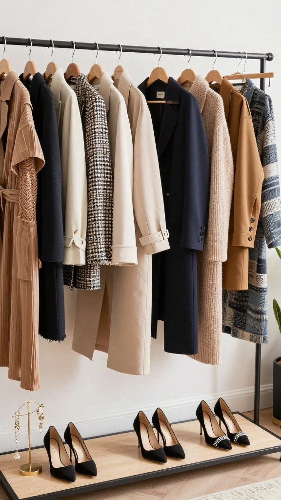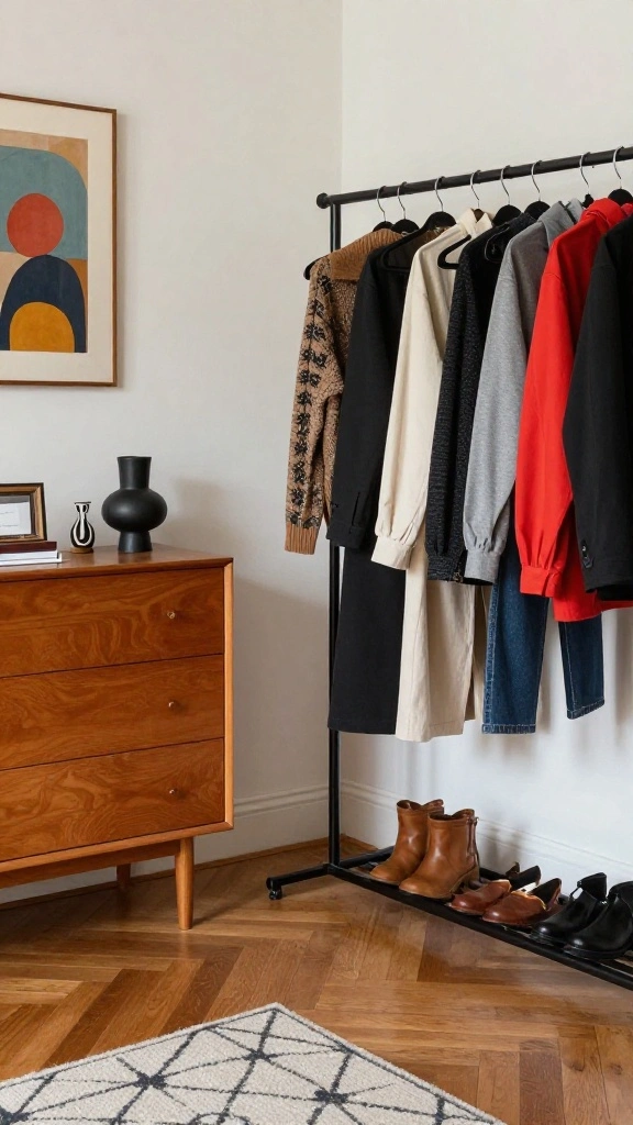 Display your favorite clothing pieces like works of art in your dressing room. Using a stylish clothing rack to showcase your go-to outfits can turn them into eye-catching decor. Arrange items by color or style to create a visually appealing narrative that reflects your fashion sense. Incorporating a unique shoe display or a decorative jewelry stand elevates the aesthetic, making your space both functional and beautiful. This approach not only enhances your dressing room’s style but also celebrates your personal taste.