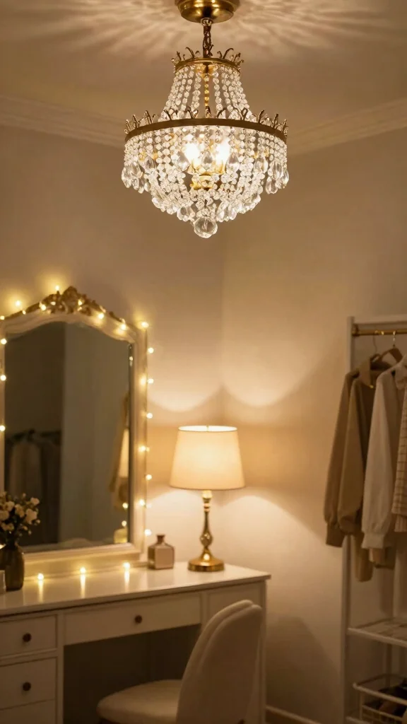 Lighting plays a crucial role in transforming your dressing room from mundane to magnificent. Layering different types of lighting—ambient, task, and decorative—can create a warm and inviting atmosphere. A stunning chandelier or a chic pendant light can serve as a striking focal point while providing necessary illumination. Task lighting, such as vanity lights or table lamps, ensures you have adequate brightness for makeup application or outfit selection. Don’t overlook the charm of fairy lights or LED strips; these can add a whimsical touch to mirrors and shelves. Proper lighting not only enhances aesthetics but also elevates your mood during your getting-ready routine.