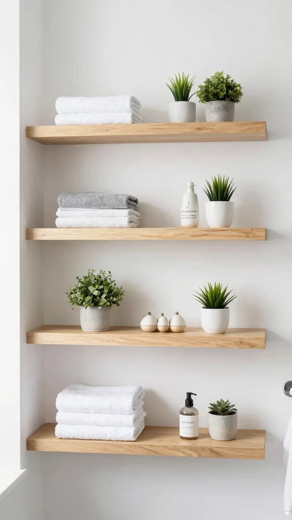 Implement floating shelves and stylish basket storage to keep your bathroom organized while looking chic.