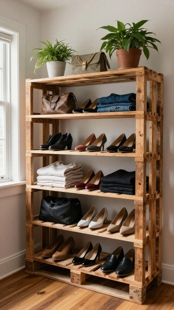 Using pallets not only brings a unique flair to your closet but also embraces sustainable practices.