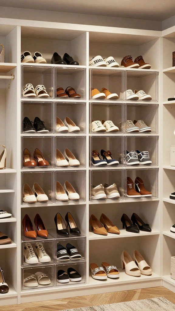 Well-organized shoe storage contributes to a tidy closet while highlighting your favorite pairs.