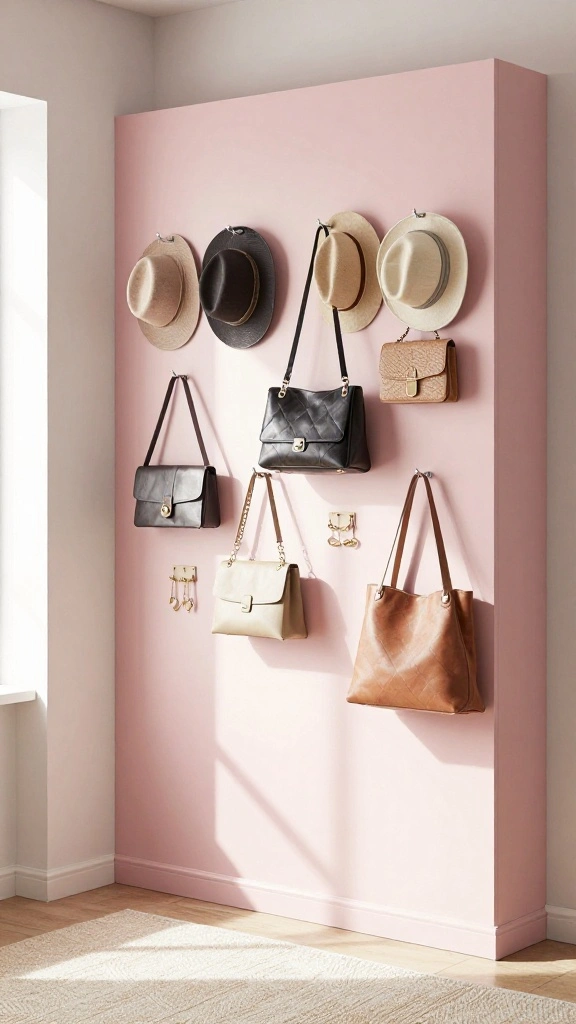 Maximize small spaces with clever vertical hanging solutions. Install hooks or pegboards to utilize your closet’s height, allowing you to hang bags, hats, or jewelry. This keeps your floor and shelf space clear while showcasing your favorite pieces in a stylish way.
