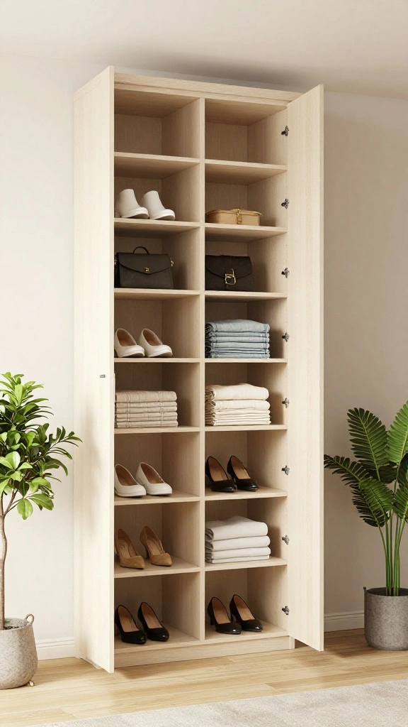 Create a flexible wardrobe with adjustable shelving units. These units can be tailored to your specific needs, whether for shoes, bags, or folded clothes. They adapt over time as your wardrobe evolves, making them a wise investment.