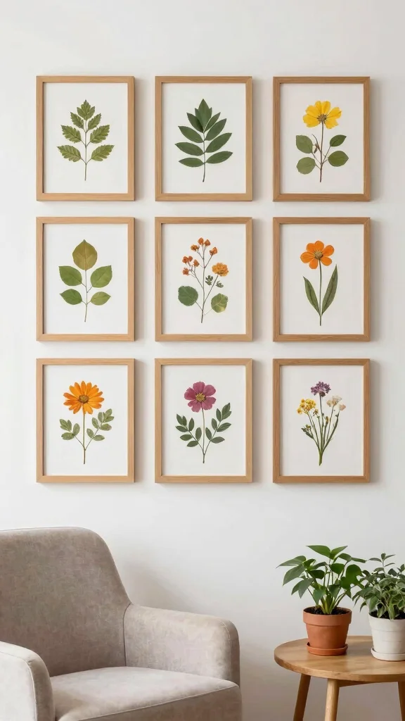 Create DIY botanical prints using leaves or flowers for a fresh, nature-inspired wall display.