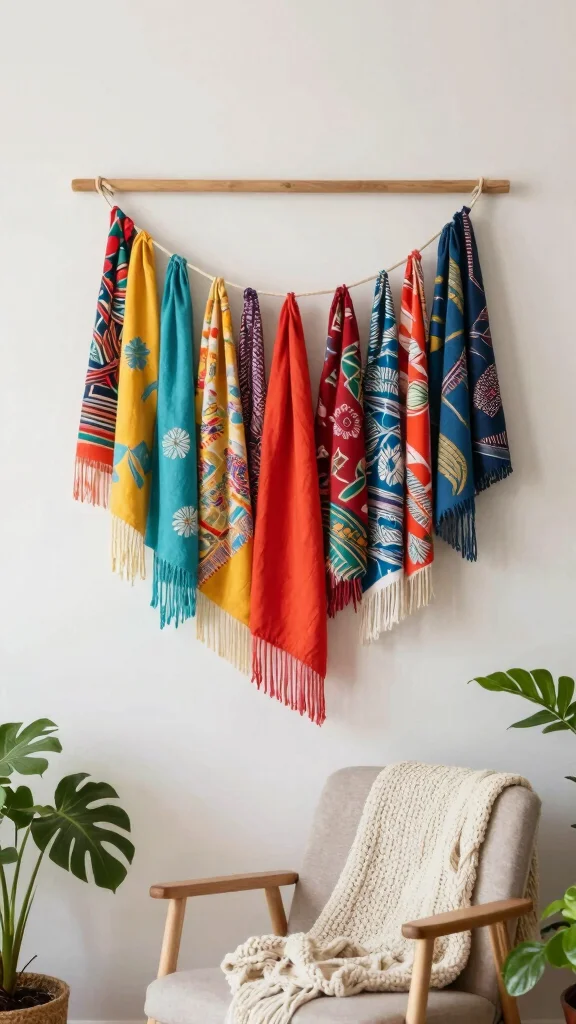 Create a stunning fabric wall hanging that showcases your unique style and love for textiles. This art form allows you to utilize scraps from old clothes or linens, turning them into a vibrant display that adds warmth and color to your living room. Arrange different shapes and colors into a captivating pattern, suspended from a wooden dowel or branch for an effortless bohemian vibe.