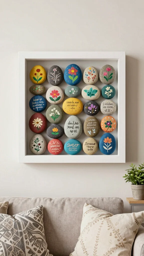 This project is a fantastic way to incorporate natural elements into your decor while showcasing your unique style. Each rock becomes a personal statement, adding character and warmth to your living room.