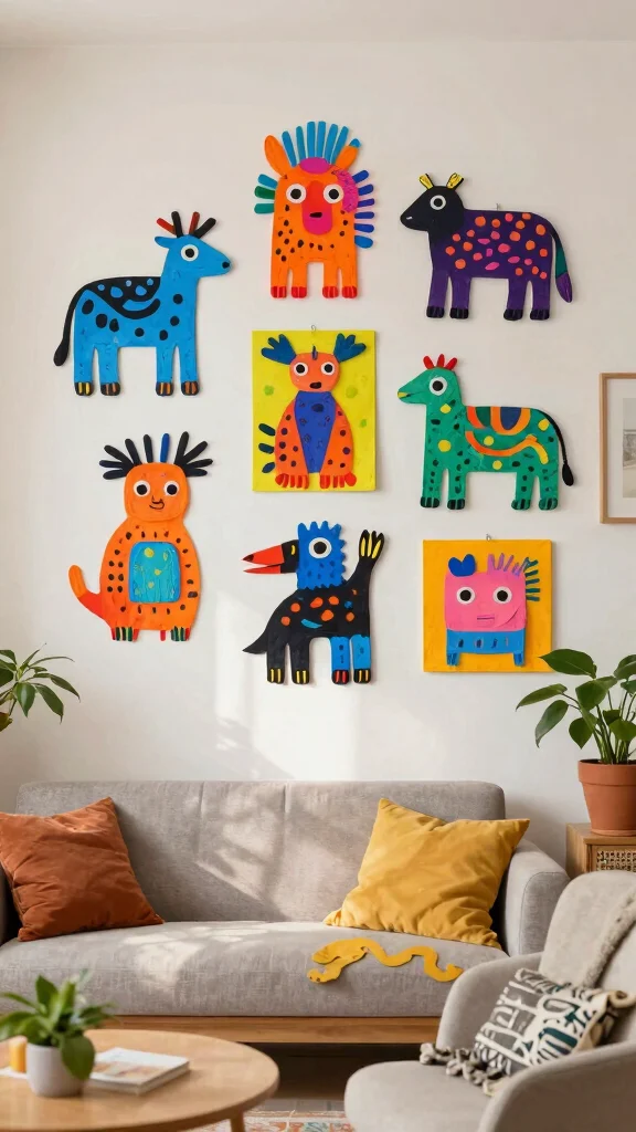 Hang your paper mâché art as standalone pieces or create a dynamic collage on your wall. This project is not only fun but also eco-friendly, making it a great way to use materials you already have.