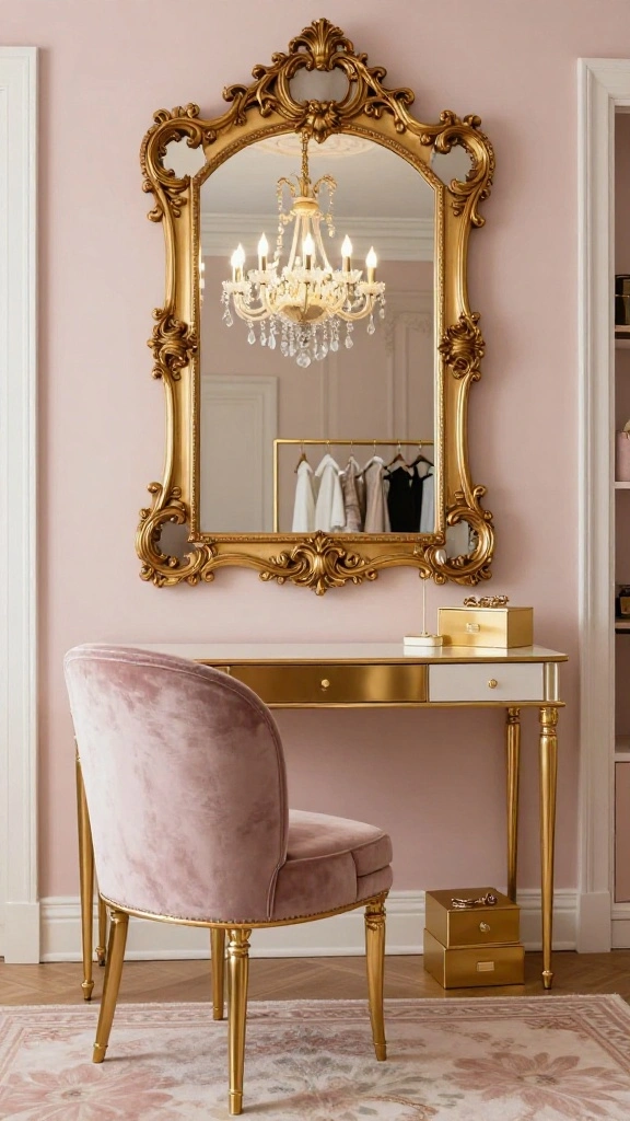 Infusing your dressing room with gold accents adds a luxurious touch that can transform the ambiance entirely. Gold hardware, mirrors, and fixtures create an opulent contrast, especially when paired with soft pastel colors that soothe the eye. Plush rugs and velvet seating enhance comfort while maintaining a chic and elegant vibe.