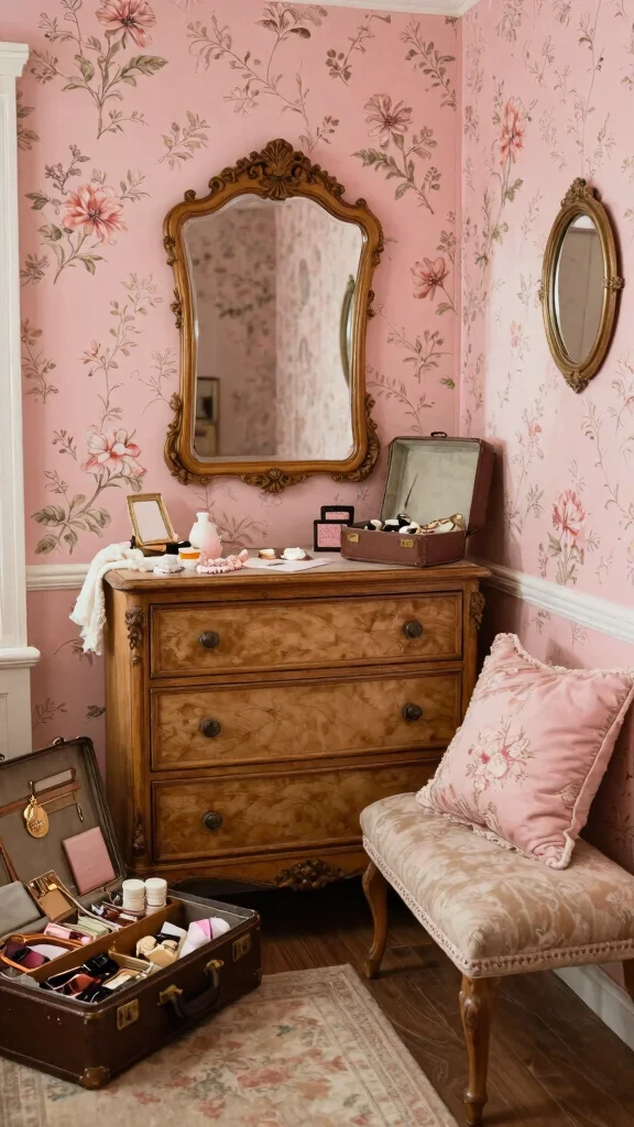 This vintage approach not only beautifies your dressing area but also enriches it with textures and materials that evoke warmth and familiarity.