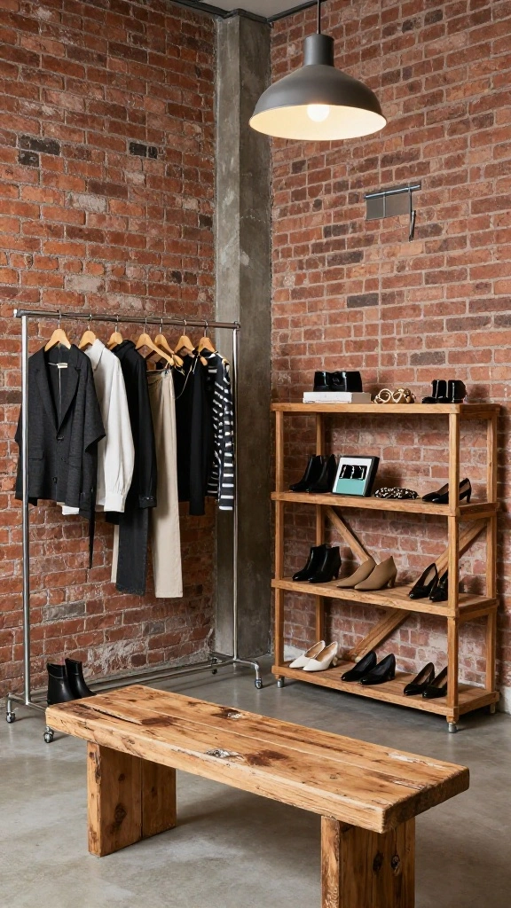 If you’re exploring dressing room ideas on a budget, mix exposed brick with reclaimed wood shelves. You’ll get modern industrial vibes without breaking the bank.