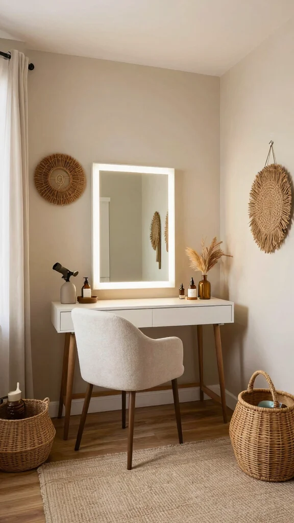 This thoughtful arrangement not only beautifies your dressing area but also emphasizes how textures and materials can enhance the overall experience.