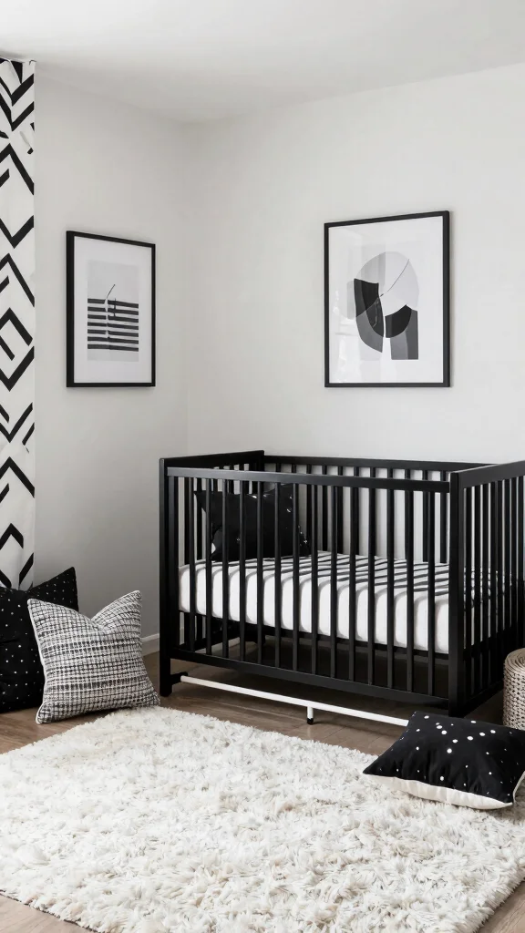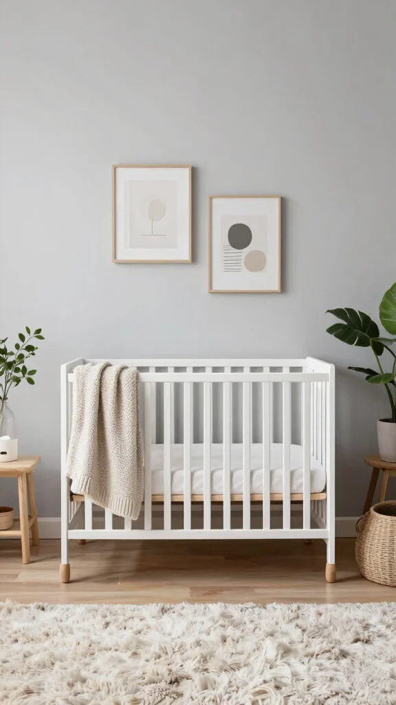 A simple crib with clean lines combined with minimalist decor can foster a tranquil environment. Incorporating soft textures like knitted blankets and plush rugs helps create a cozy feel, while simple wall art or indoor plants can enhance the fresh, airy vibe.