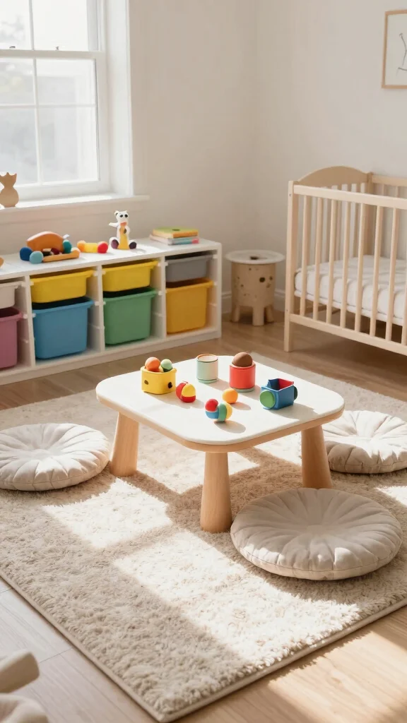 Integrate a designated play area to encourage creativity and movement as your baby grows.