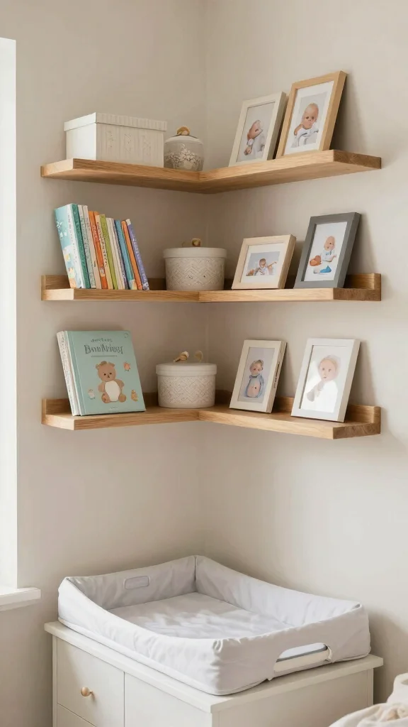 Floating shelves can transform bare walls into functional storage areas while adding a decorative flair to your baby corner. These shelves allow you to display essentials and charming decor without taking up precious floor space. Placing them above the changing table or crib ensures that you have easy access to diapers and wipes when needed.