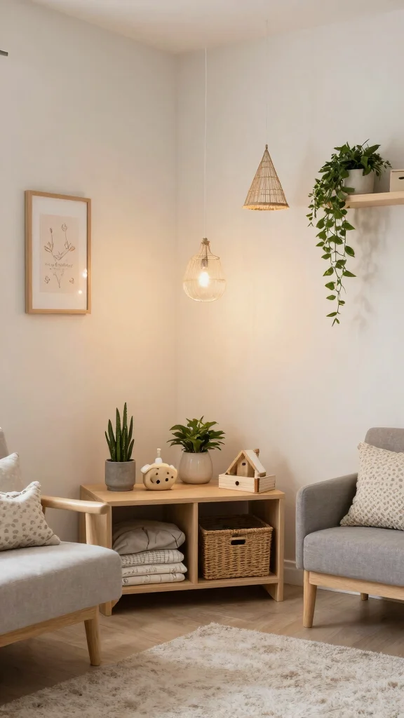 This setup provides both functionality and style, allowing you to maintain a serene atmosphere in your baby corner.