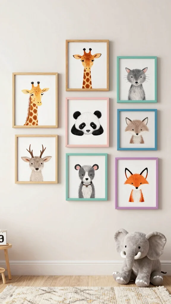 Whimsical animal prints are a joyful addition to any nursery, infusing the space with playfulness and charm. Featuring adorable creatures like elephants and lions, these illustrations can ignite a child’s imagination while creating a soothing ambiance. Displaying a curated collection of diverse animal prints in a gallery layout not only beautifies the wall but also sparks conversation and wonder.