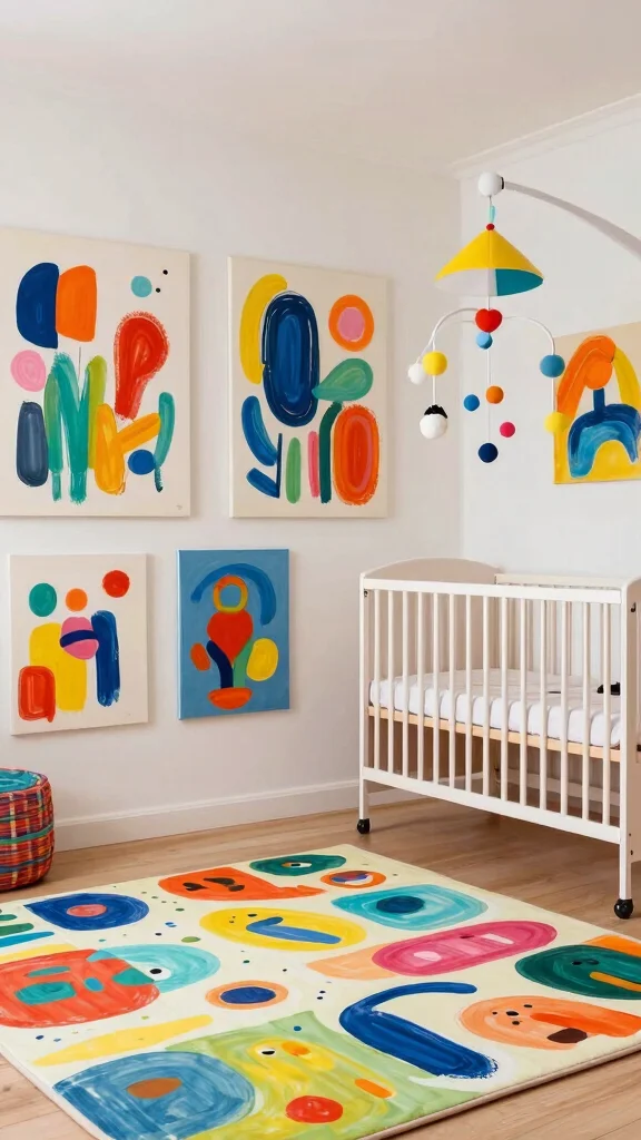 Colorful framed art collections create a stimulating atmosphere that supports your child’s creative development.