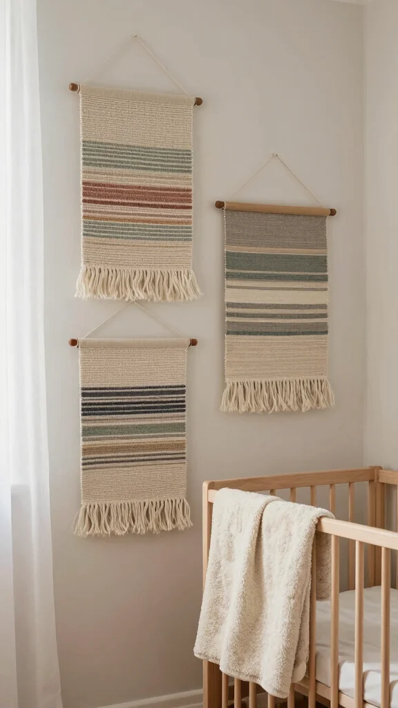 Soft textile wall hangings provide a unique way to add warmth and texture to your nursery, creating a cozy atmosphere. Ranging from woven tapestries to felt art, these pieces can introduce color and pattern without overwhelming the walls. Incorporating textiles can enhance the overall softness of the space, making it inviting and comfortable.
