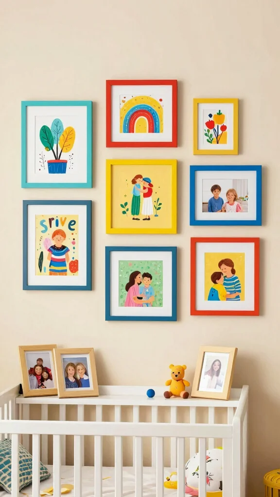 Curating a colorful collection of framed art can bring personality and vibrancy to your nursery, creating a lively and engaging environment. By selecting a variety of sizes and styles, you can design a dynamic gallery wall that sparks joy and inspiration. This collection approach encourages creativity, allowing you to rotate pieces as your child grows.