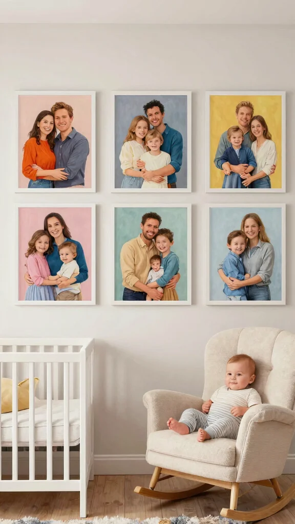Artistic family portraits enrich your nursery with love and warmth, reflecting your family’s unique story.