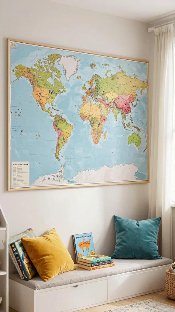 Turn your nursery into a tiny globe of curiosity with adventurous world maps in baby room art. A colorful, kid-friendly map makes learning continents fun and frames daily exploration as you point out new places together.