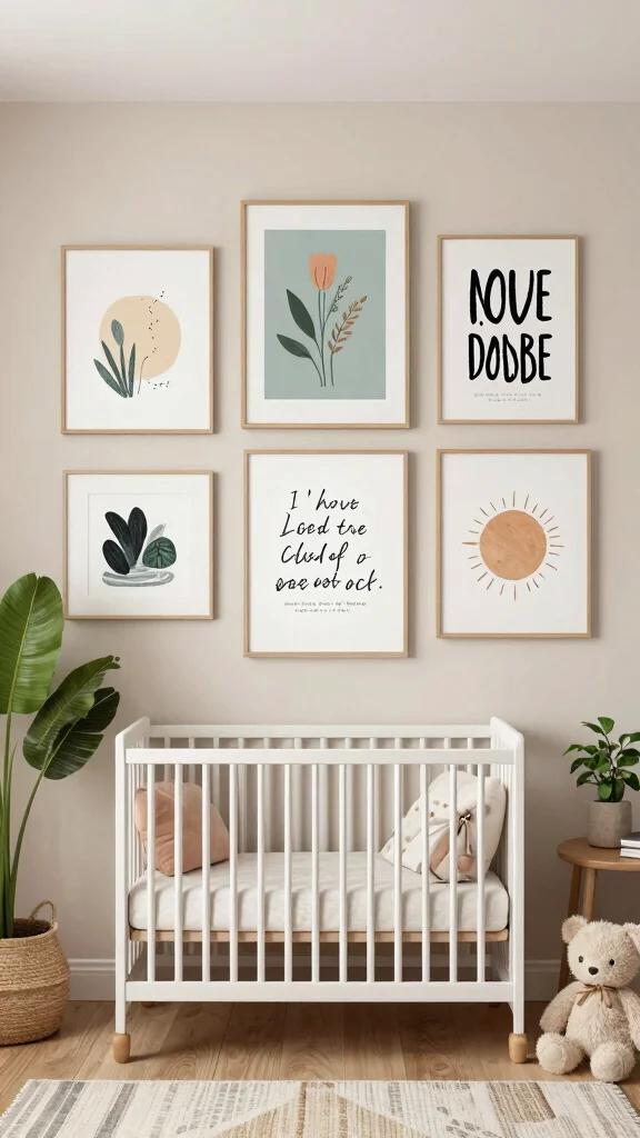In this post, you’ll discover a variety of wall art inspirations. From whimsical animal prints and soft watercolor landscapes to interactive art boards, there’s something for everyone. Each idea is designed to create a playful atmosphere while being gentle on the eyes. Your nursery will not only look stunning, but it will also be a warm and loving space for your baby to grow and explore.