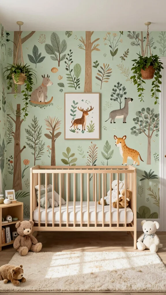 Pair this wallpaper with minimalist furniture crafted from sustainable materials to complete the eco-friendly theme. This combination not only looks good but also promotes a sense of well-being in the nursery.