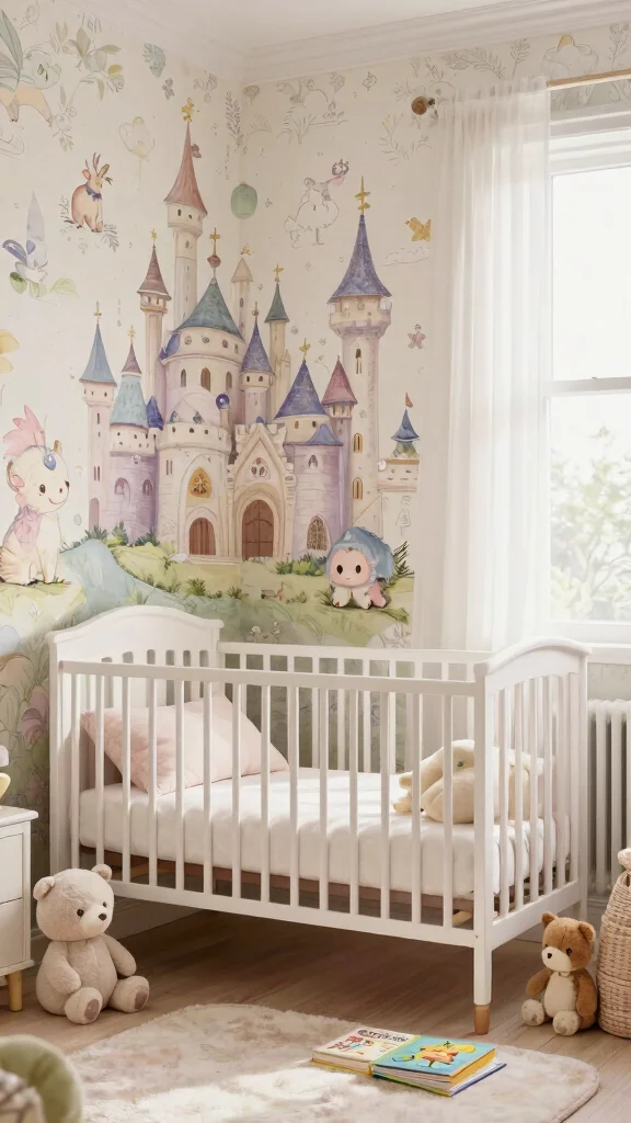 Pair the wallpaper with themed nursery wall art that depicts favorite characters or scenes, deepening the magical feel of the space. This thoughtful combination fosters a nurturing environment for young dreamers.