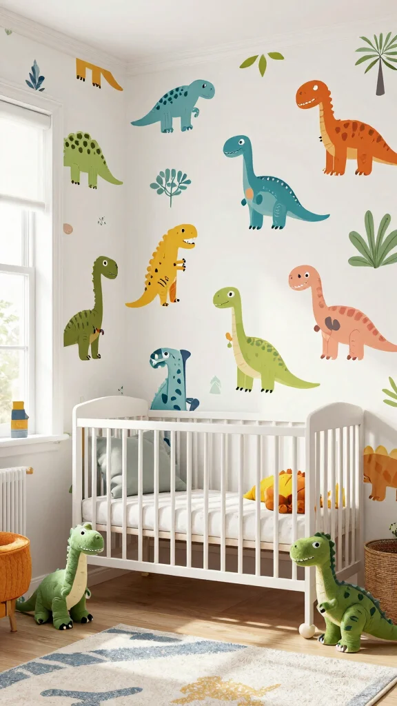 For the adventurous little one, dinosaur-themed wallpaper can ignite curiosity and excitement. Featuring friendly dinosaur characters in vibrant colors, this design can transport your child’s imagination to a prehistoric world filled with wonder and exploration. Complement the wallpaper with dinosaur figurines, books, and themed nursery wall art to enrich the playful theme.