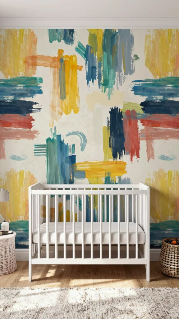 For a unique and modern touch, consider wallpaper that mimics artistic brush strokes. This abstract design adds a creative flair to your baby’s room while stimulating artistic appreciation. Choose a palette that complements your existing decor, incorporating textured accessories to enhance the overall look.