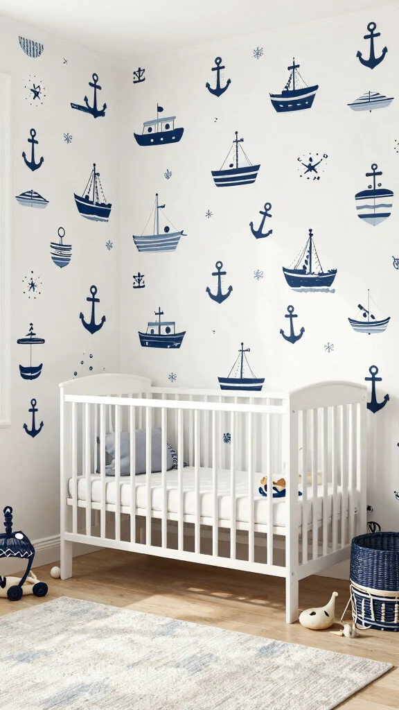 Enhance the nautical theme with decor items like marine-colored toys and wall art depicting sea creatures, creating a cohesive and playful environment. This combination can inspire curiosity and imagination in your little one.
