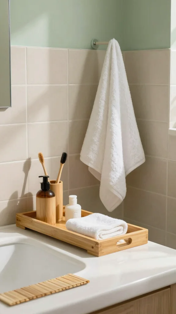 – Pair bamboo trays with soft cotton towels for a cohesive look