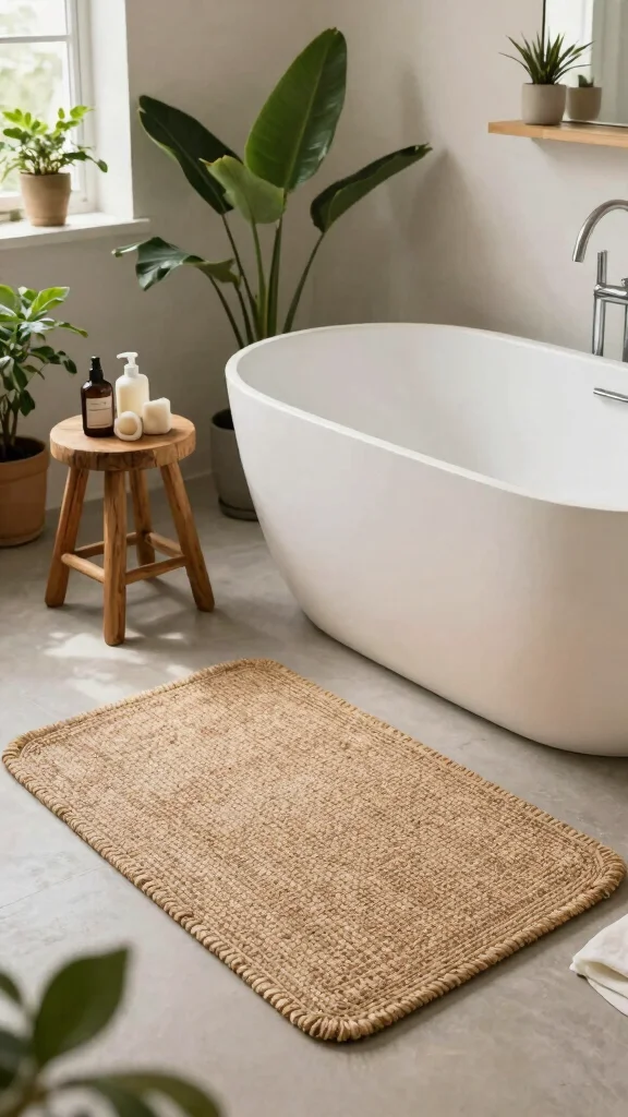 To maximize the impact of biodegradable mats, consider placing them in front of sinks or tubs for a soft landing. For budget-conscious shoppers, look for sales or local artisans who create beautiful sustainable products. This trend not only enhances the beauty of your bathroom but also encourages a commitment to environmental responsibility.
