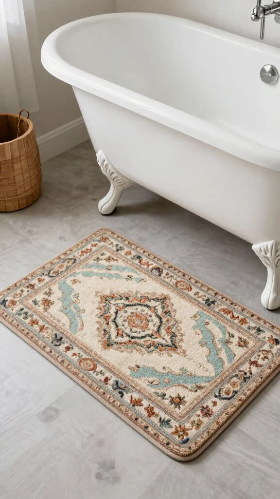 When selecting your bath mat, choose materials like cotton or jute for durability and easy maintenance. Pair it with other vintage accents for a cohesive look that ties the space together.