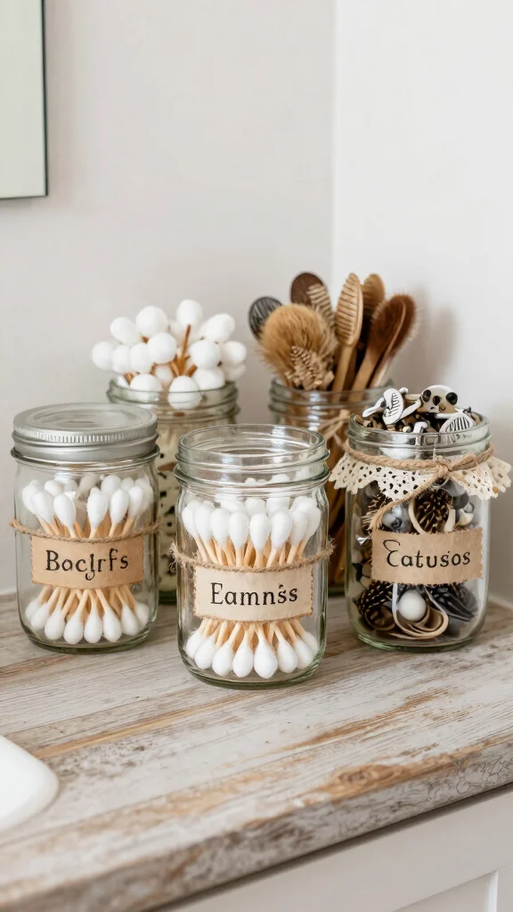 Even small changes make a big impact—mason jar organizers turn chaos into calm and give every bathroom a vintage farmhouse vibe. Keep a few labeled jars on the counter and watch your country style bathroom accessories feel instantly organized and charming.