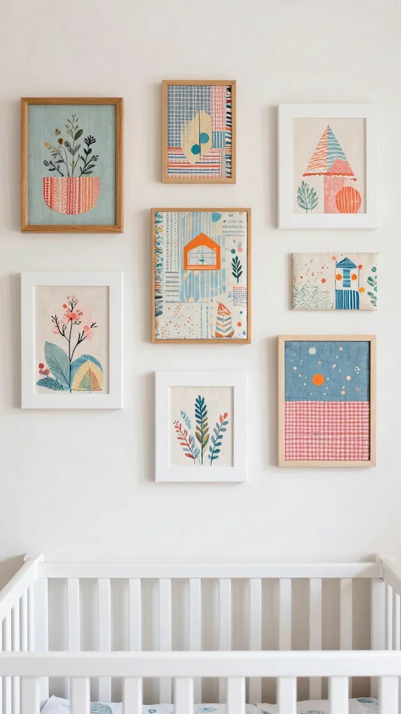 To keep costs low, visit local fabric stores or thrift shops for unique fabric finds. Experiment with various shapes and arrangements to create a gallery wall that evolves as your child grows. This project not only beautifies the space but also provides a creative outlet for you to express your artistic side.