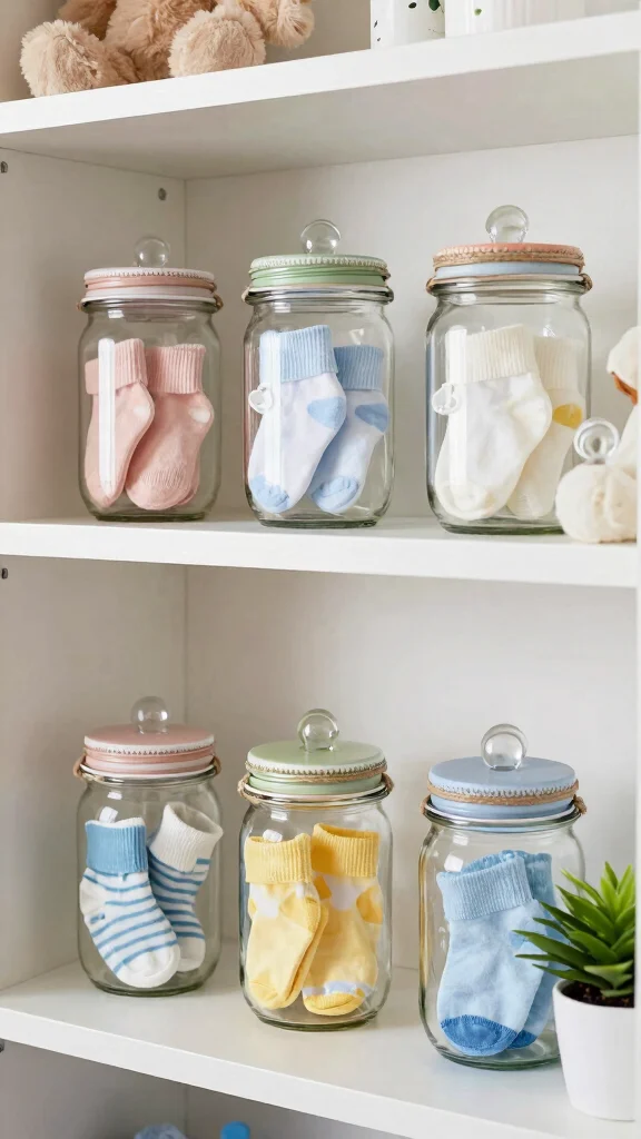 This clever storage solution combines functionality with style, transforming your nursery into a tidy yet welcoming environment. The visual appeal of the jars enhances the decor while promoting a sense of order.