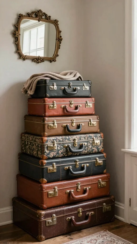 You can customize the suitcases with paint or decorations to match your decor style, adding a personal touch to your space. Their versatility allows you to rearrange them easily, making them perfect for changing your room’s layout.