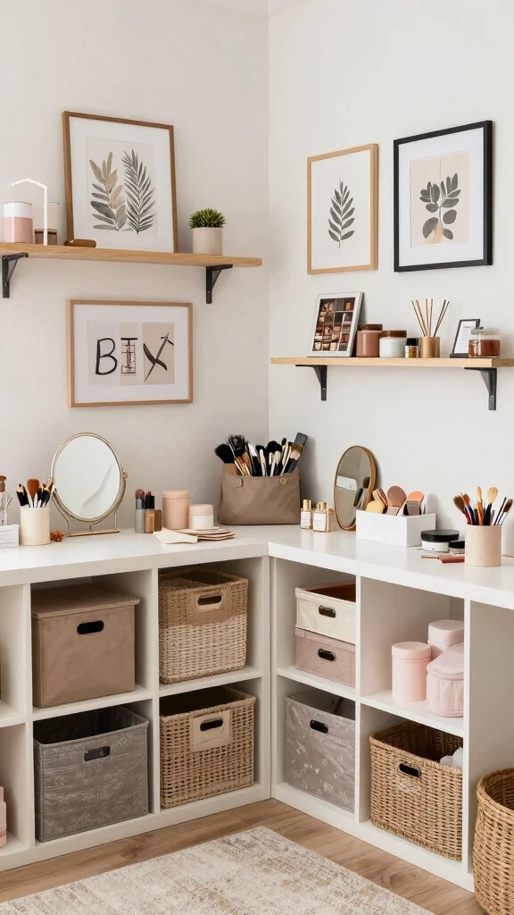 Consider creating a gallery wall with a mix of sizes and styles for a fun and eclectic vibe. This not only enhances the visual interest of your dressing area but also makes it feel more inviting.