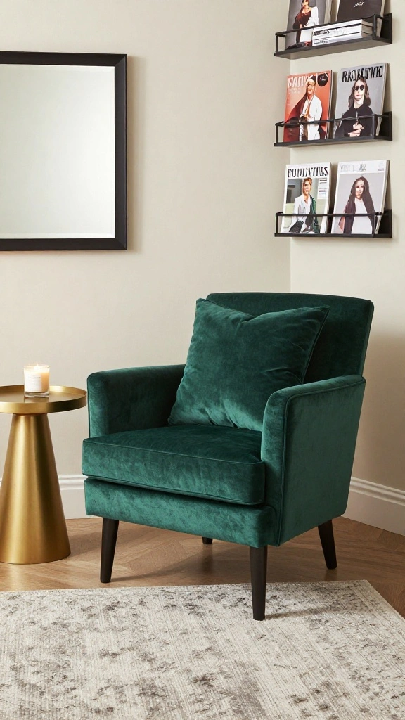 – A small bookshelf or chic magazine rack can keep your decor stylish and organized.