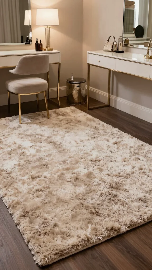 A plush rug can tie your dressing room together. Whether you prefer a fluffy shag, a sleek runner, or a classic Persian style, the right rug adds warmth and comfort, making your dressing experience feel more luxurious.