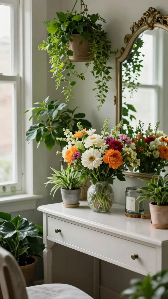 Adding plants can bring vibrancy to your dressing room. They introduce a natural element that enhances the beauty of the space. Live plants or fresh flowers provide color, texture, and even improve air quality, making your dressing area feel more refreshing.