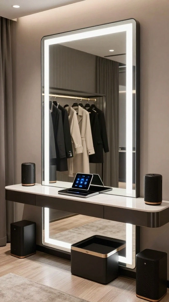 Incorporating technology can enhance your dressing room experience. Consider smart lighting, Bluetooth speakers, or a dedicated charging station for your devices. These modern upgrades can bring convenience and luxury to your space.