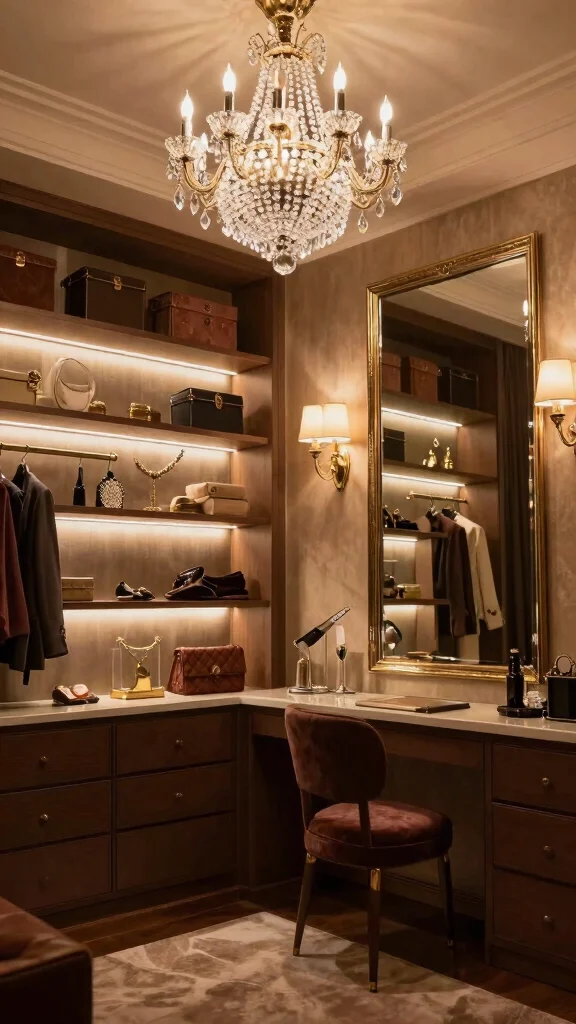 The right lighting transforms everything! A well-lit dressing room can elevate your mood and showcase your outfits perfectly. Incorporate ambient, task, and accent lighting to create a warm and inviting environment that meets all your functional needs.