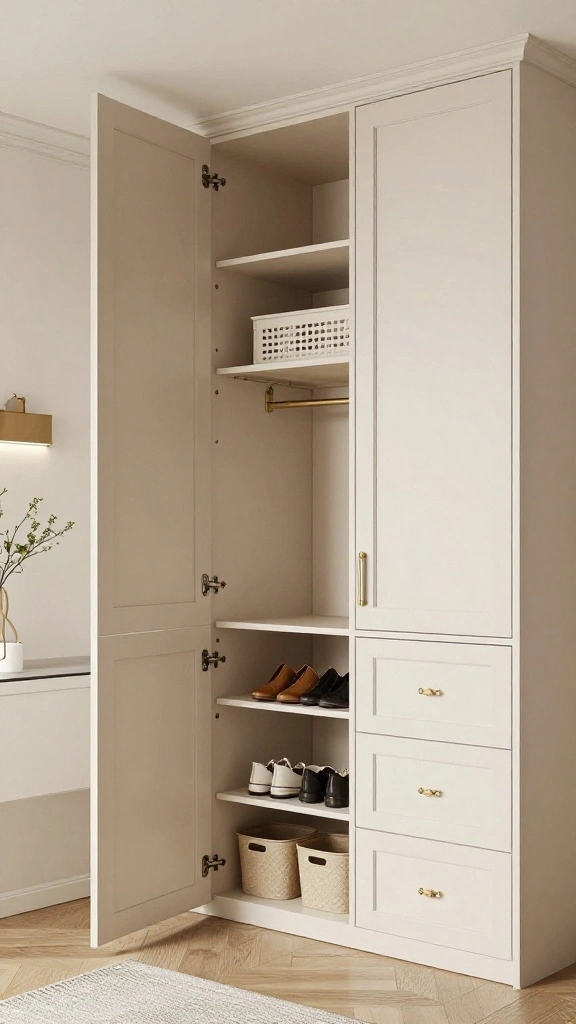 – Consider including pull-out racks for shoes, tie racks, or built-in hampers for convenience.