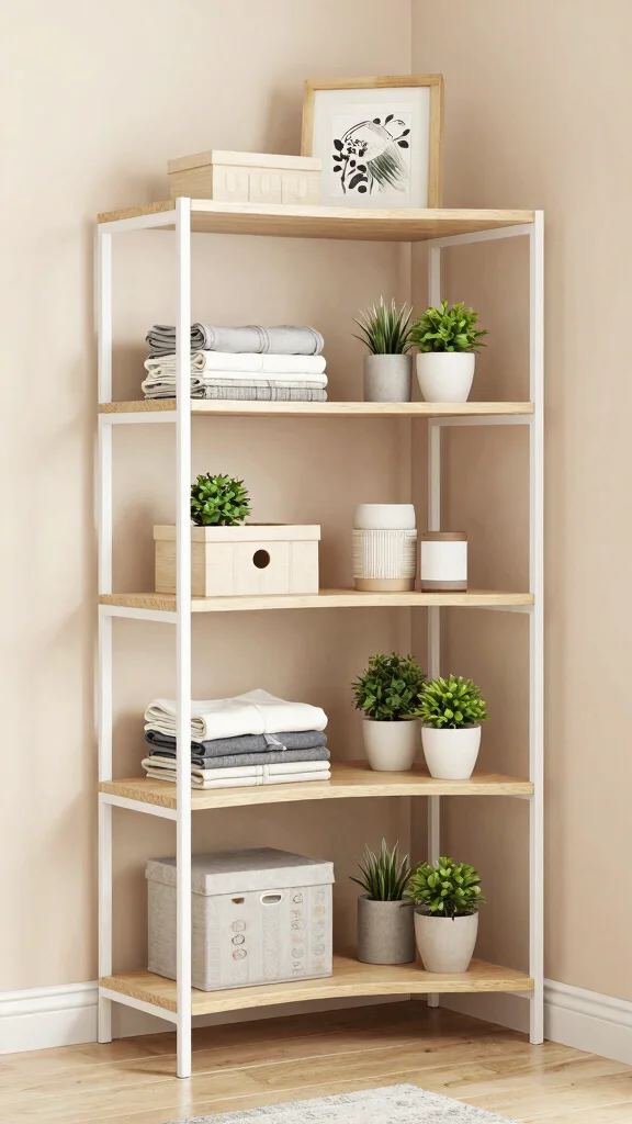To maximize this setup, think about using decorative baskets or trays to keep smaller items organized. Here are some ideas to optimize your corner shelves: