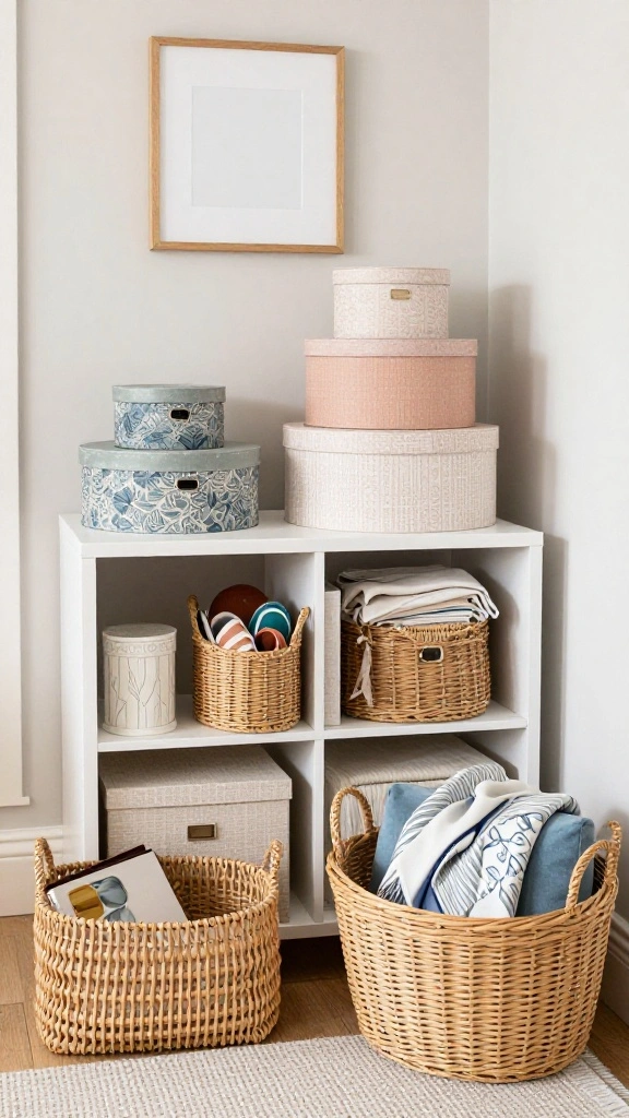 These versatile storage solutions are perfect for organizing scarves, shoes, or beauty products. Choose various textures and colors that resonate with your personal style, ensuring they remain functional as well.