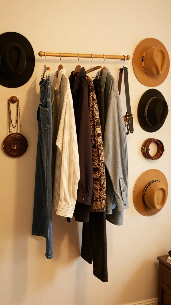 Hanging rods and hooks are excellent for optimizing vertical space and keeping your dressing room organized.