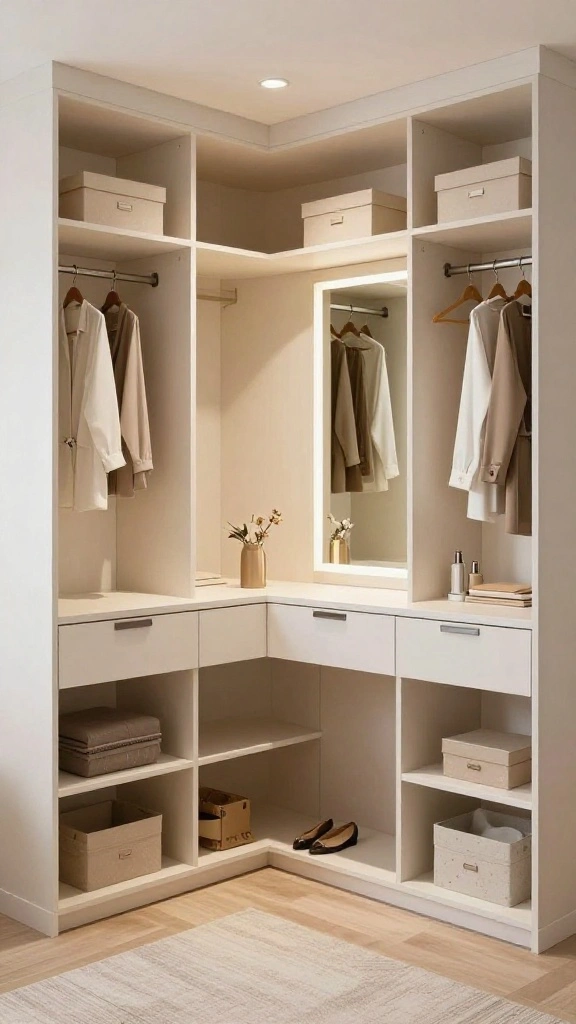 Maximizing corners in your dressing room can enhance both functionality and style. A well-thought-out corner can transform a small area into a chic and organized space, making the most of every inch. Consider a corner wardrobe with sliding doors for easy access, paired with corner shelves to display cosmetics and accessories beautifully.