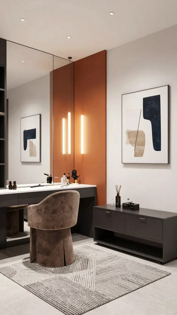 Strategically placed mirrors can transform your dressing room, especially in compact spaces. Mirrors enhance light and create an illusion of spaciousness, making the room feel larger and airier. A large statement mirror can act as a stunning focal point, while smaller decorative mirrors add depth and dimension.
